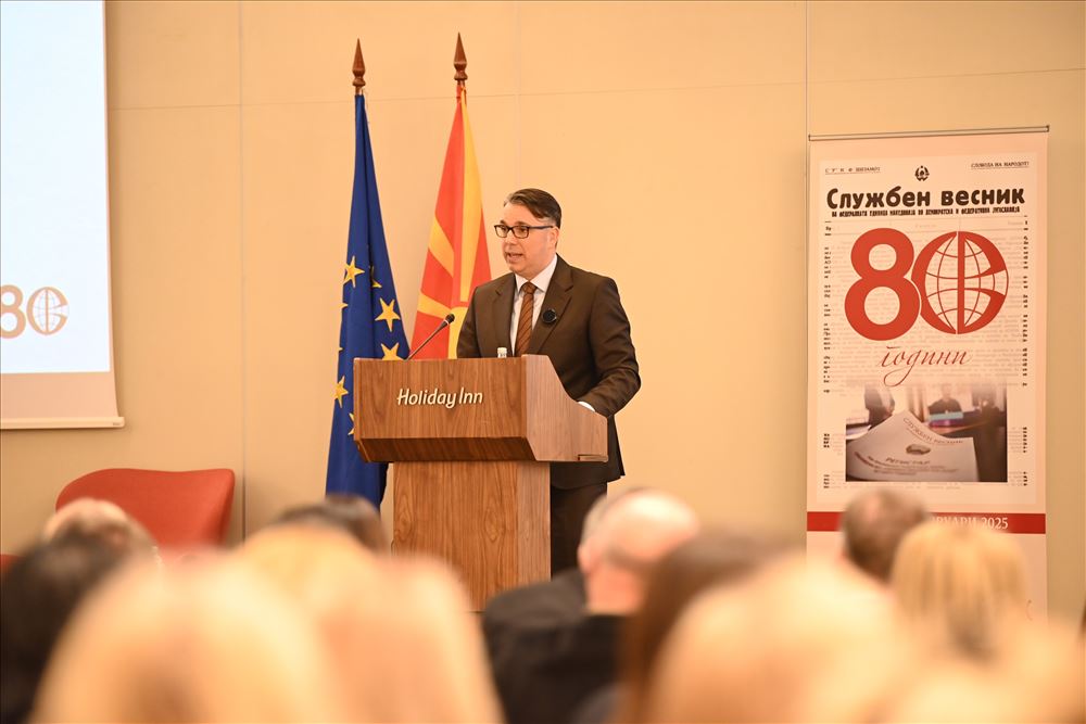 Држејќи го вo раце првиот број на Службениот весник на Федералната единица Македонија во демократска и федеративна Југославија кој бил резервиран за основните акти на АСНОМ од 2 август 19444 година, министерот за правда Игор Филков во своето обраќање по повод јубилејот на ЈП Службен весник, го истакна значењето на службеното гласило за нашата државотворност.