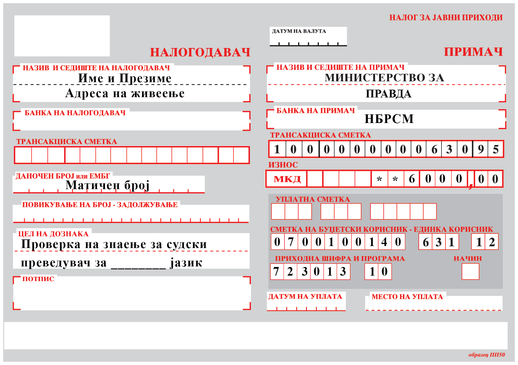 Ministria e Drejtësisë e zbaton procedurën për vendosjen e përkthyesve në përputhje me Ligjin për gjykatat (“Gazeta Zyrtare e RM-së” nr. 58/06, 62/06, 35/08, 150/2010 dhe 83/18) dhe Rregullores gjyqësore (“Gazeta Zyrtare e RM-së” nr. 66/13 dhe 114/14), sipas mënyrës dhe kushteve të përcaktuara me nenet 32 dhe 59.